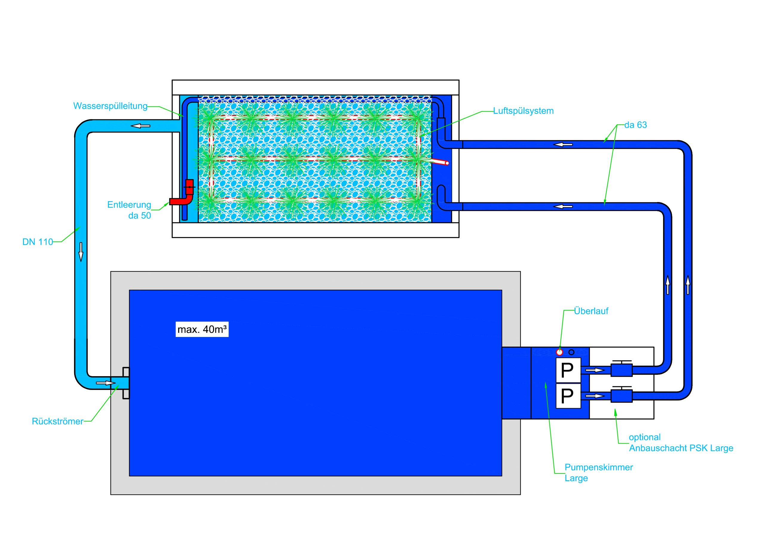 Ob Umrüstung von vorhandenen Pools oder Neubau - die fertig vorinstallierte Filterzone von 2 m² reinigt bis zu 40 m³ Wasser.